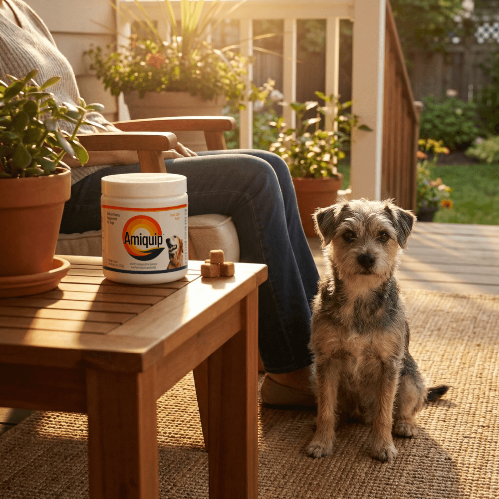 PQQ has been studied for its role in supporting mitochondrial function, the part of the cell responsible for energy production. Healthy mitochondria are essential for maintaining vitality as dogs age.